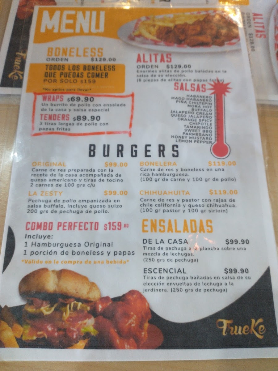 Welcome to TRUEKE COMIDA Y AMIGOS, where culinary delights meet a friendly atmosphere in Ciudad Juarez, Mexico. This spot specializes in mouthwatering options, with their signature Boneless and crispy Alitas taking center stage. Each dish is accompanied by a variety of delectable sauces that elevate every bite, ensuring a satisfying experience. Highlights include the Combo Perfecto—a delightful mix of a cheeseburger, fries, and boneless—perfect for a hearty meal at just MX$269.00.